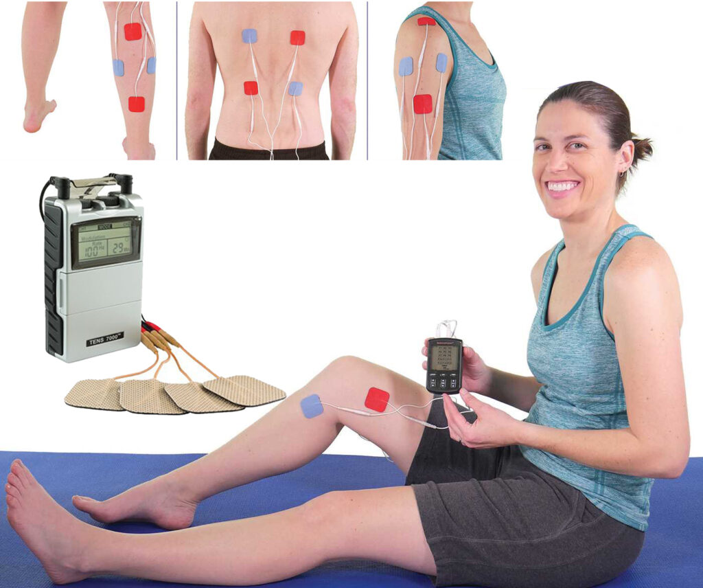 TENS units work by delivering small electrical impulses through electrodes that have adhesive pads to attach them to a person’s skin.
